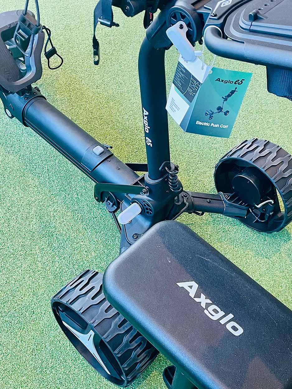 Der Axglo selbst ist zusammengeklappt easy im Kofferraum verstaubar und wenigen Handgriffen einsatzbereit. Sicherlich kann er als „normaler“ elektrischer Trolley genutzt werden oder per Fernbedienung aber beide Modi nutze ich (nach nun mehreren Runden) so gut wie nie.