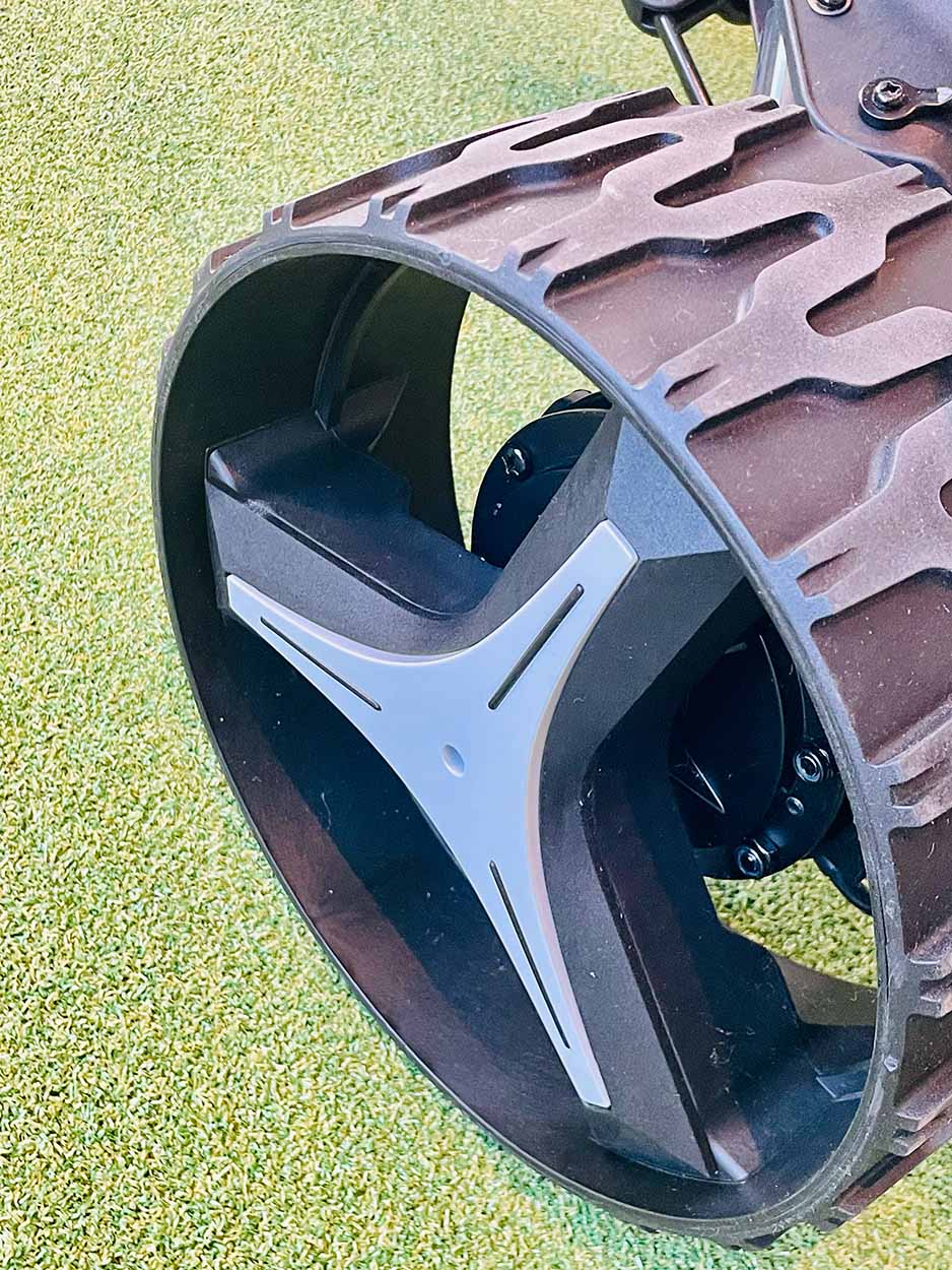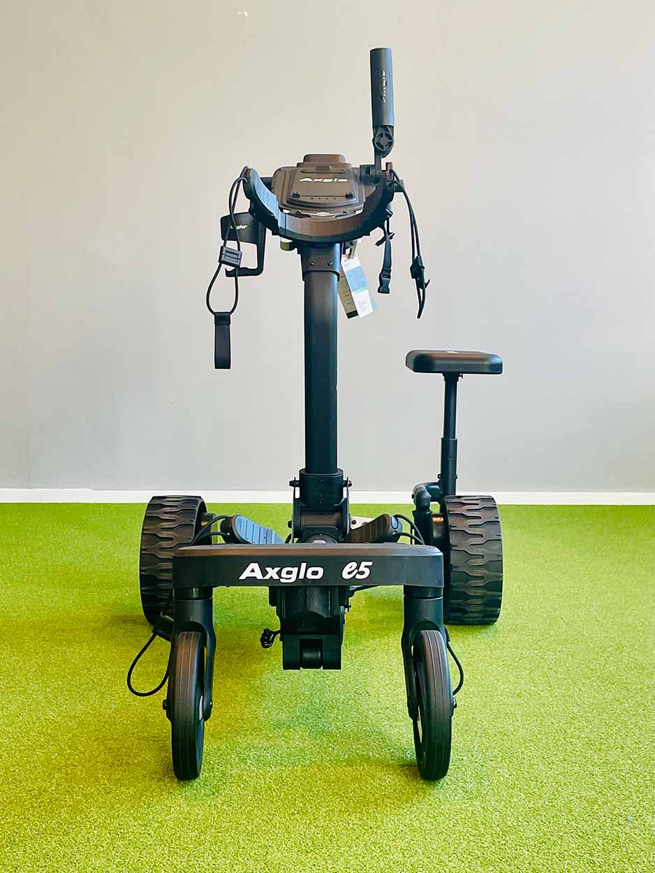 Der Grund ist der Follow-Me Modus, der absolut perfekt ist. Auf der Fernbedienung 1-2 Tasten drücken (je nach dem ob der Axglo im „Parkbremsmodus“ war oder nicht) und einfach wie ein Pro ohne sich um was zu kümmern auf dem Fairway, etc. laufen. Arme frei, nichts vor sich, die totale Entspannung auf dem Platz.