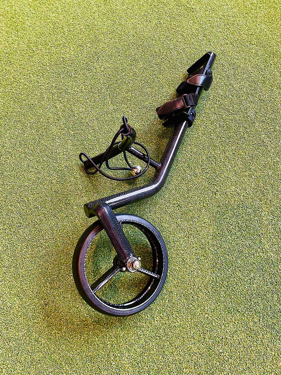 Vorderwagen komplett für ClubCad Carbon-Trolley Slim und Fernbedienung, inkl. Vorderrad, Baghalterung mit Baghaltegummi und Batteriehalteplatte inkl. Gurte