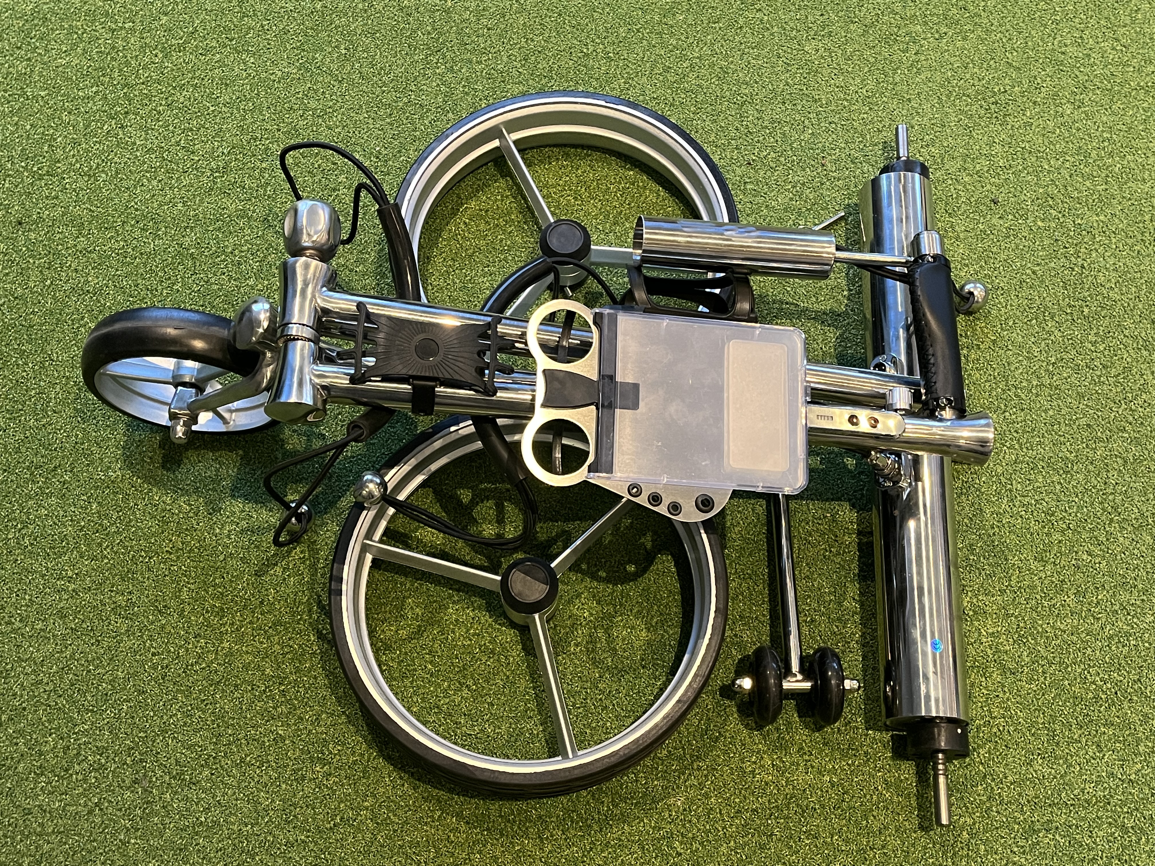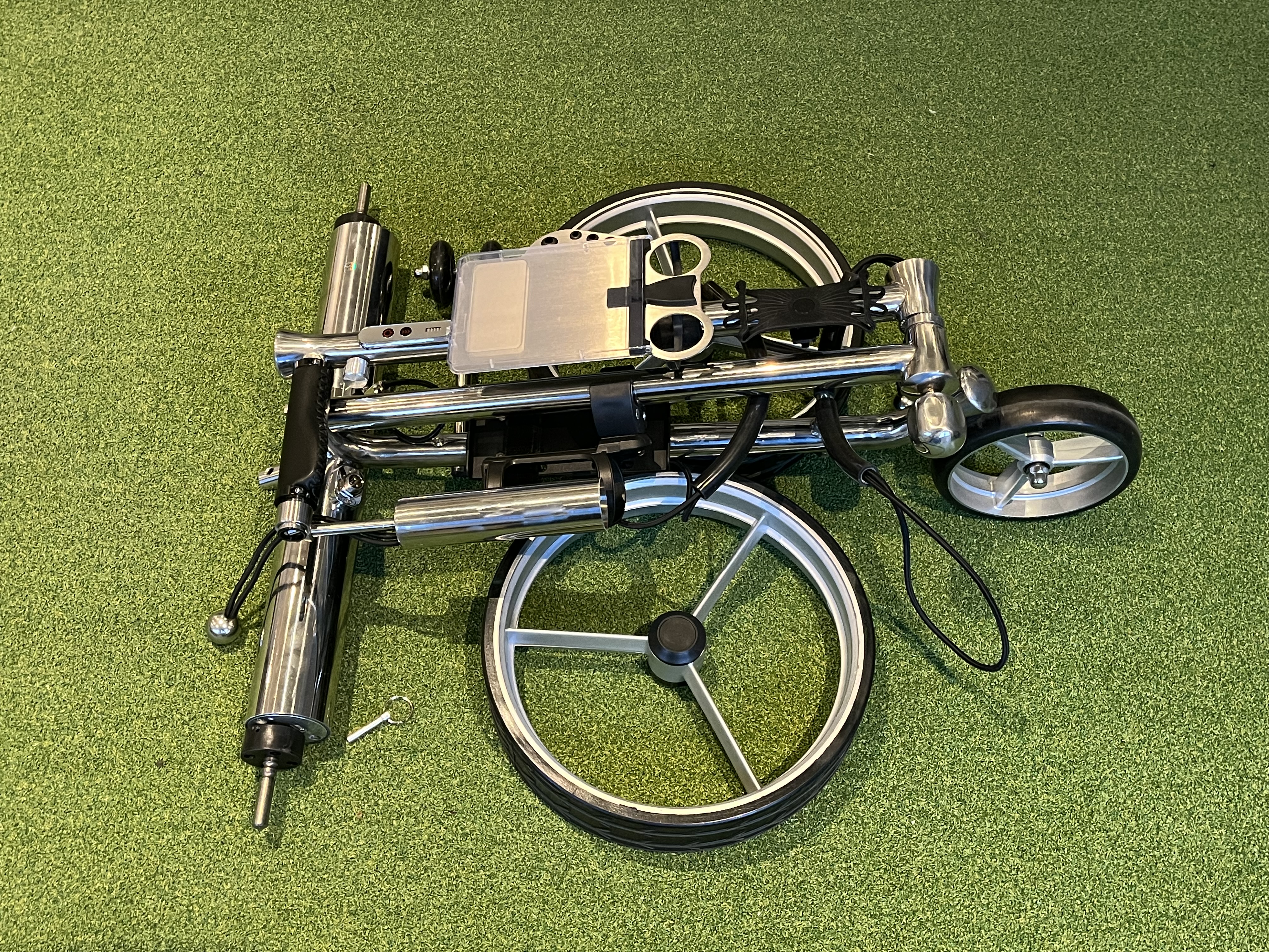 - enthaltenes Zubehör: Scorecardhalter, Getränkehalter, Schirmhalter, Smartphone-Halter, Transporttasche, Schmutztasche Hinterräder, Fernbedienung